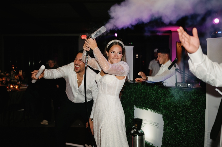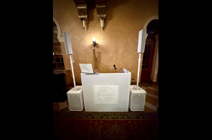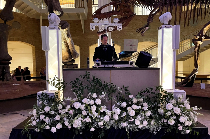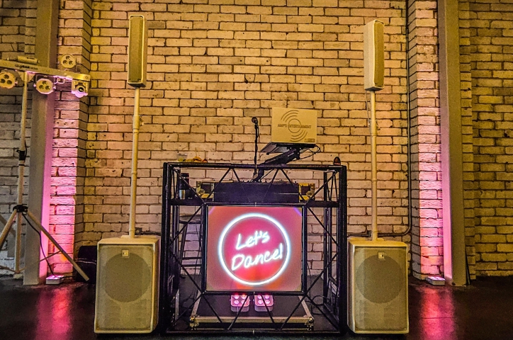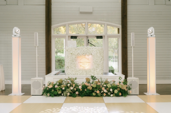 There's no better way to elevate the visual appeal at your event than to upgrade your Lighting and Decor. Dynamic Room Lighting will illuminate your entire venue and allow you to perfectly dial in the ambience. Turn the whole room into your own personal club at the touch of a button by syncing the uplights to pulse with the music. Add in Moving Head Dance Floor Lighting that sweeps from the ceiling into the crowd for a concert quality lighting experience. If space is a challenge, adding a DJ Booth shrinks the footprint of your party setup and introduces even more options for customization. Light the booth from below for a fun contemporary look or dress it up with a custom wrap for the ultimate in sophistication and personalization. Place a custom monogram, company logo, or event hashtag on the front of the DJ Booth or display it on the wall/ceiling/floor with our GOBO projector. Have a presentation? Add 50" 4k TVs on trussing or a projector and screen so your guests don't miss a thing.